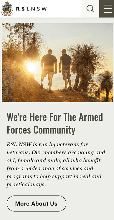 The RSL NSW website is built to honour the service of veterans while connecting them and their families to a modern, accessible support community. With a layout that prioritises clarity and belonging, the design weaves the organisation’s legacy of camaraderie and advocacy into every digital touchpoint.